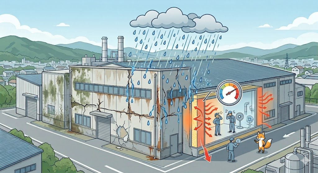 といった環境条件により、工場外壁の劣化が進みやすい地域です。