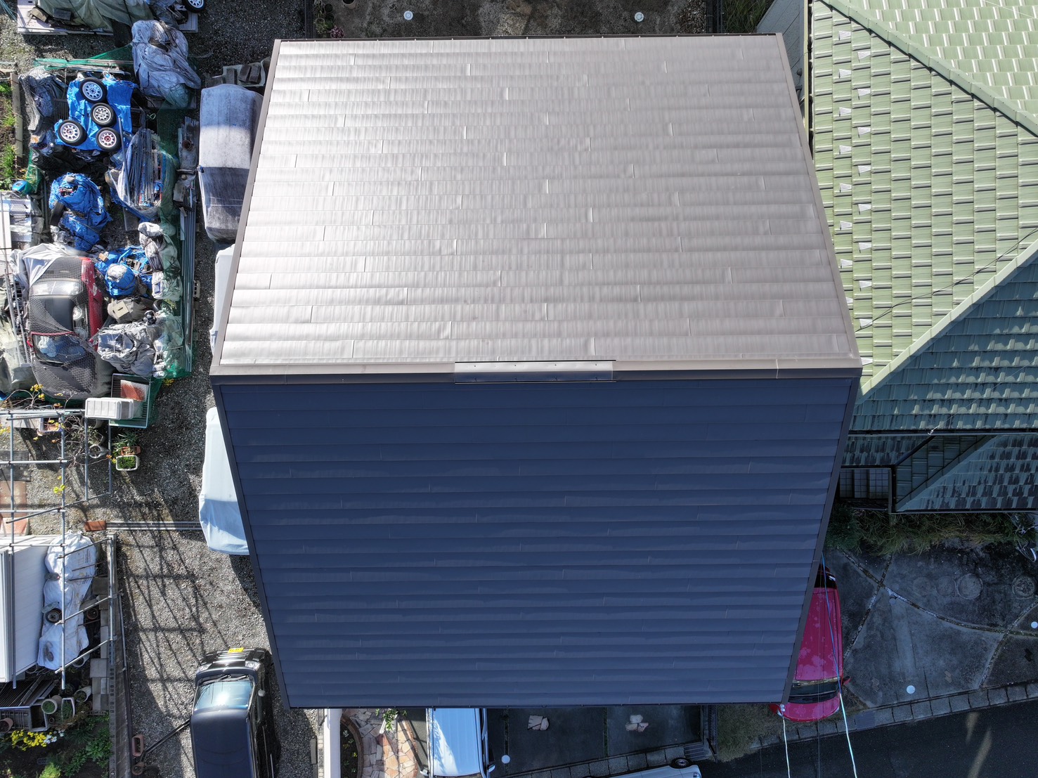 屋根は横暖ルーフSによるカバー工法で、紫外線や雨風に対する耐久性が大幅に向上しました。