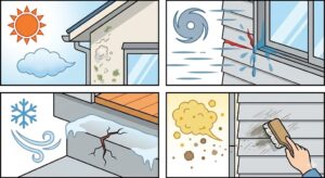●夏の高温多湿 → 膨れ・カビ発生リスク ●台風・強風 → 雨水の吹込み、目地から浸入 ●冬の乾燥風・霜 → ヒビ割れ・凍害 ●花粉・黄砂・粉塵 → 外壁表面の摩耗・汚染 👉 築10年以上経過すると、表面はきれいでも内部劣化が進んでいることが多いのが豊川市の特徴です。 |
