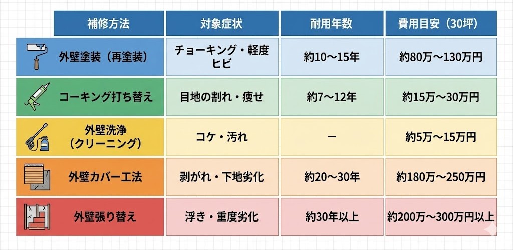 ※費用だけで判断せず、建物の状態に合った補修を選ぶことが、結果的に長持ちし、将来的な修繕費を抑えるポイントです。