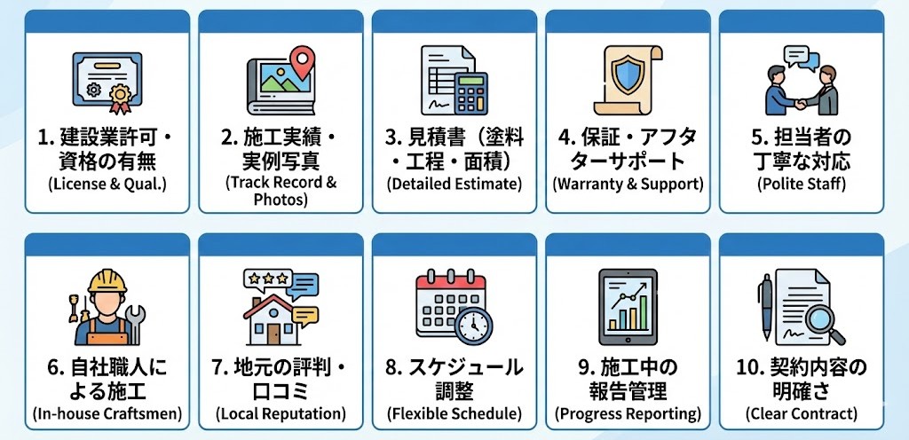 A4. 総額だけでなく、「塗料名」「工程」「保証」「下地処理」などの内容比較が重要です.