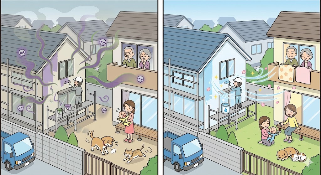 外壁塗装で本当に大切なのは、「どんな塗料を使うか」だけではなく、“ご近所とトラブルを起こさずに終えること”。