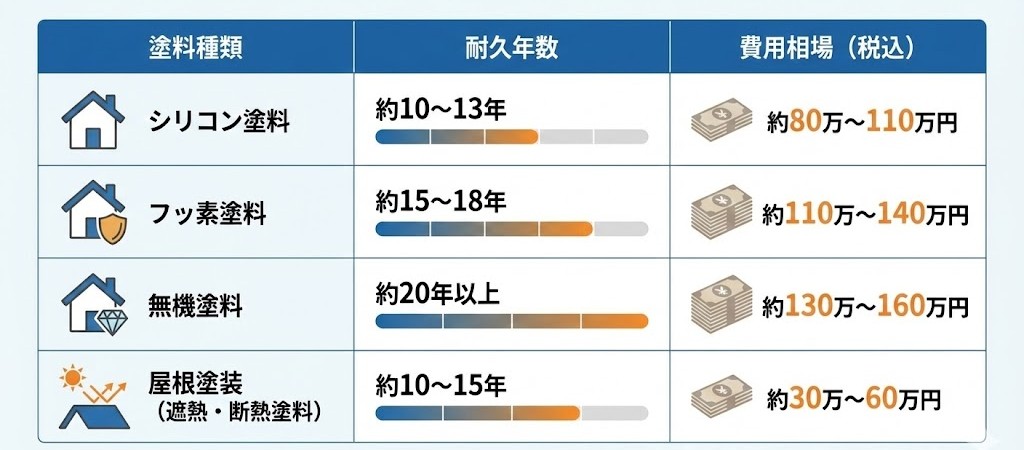 👉 家の築年数・構造・今後の住み方に合った塗料を選ぶのが最適コストです。