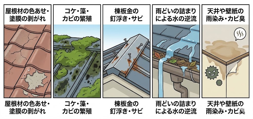 「天井にシミが出てきた」「屋根の釘が浮いている気がする」などは、防水工事を検討すべきサインです。