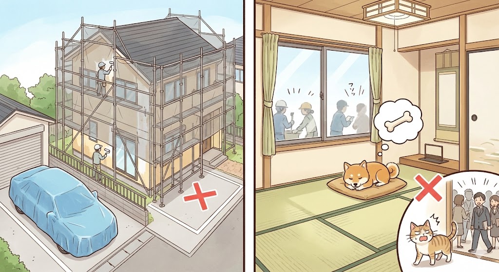 → 騒音や車の出入りに配慮したスケジュールが求められます。