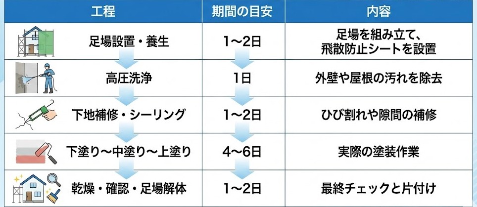 外壁塗装の工期は、天候や建物の大きさによりますが