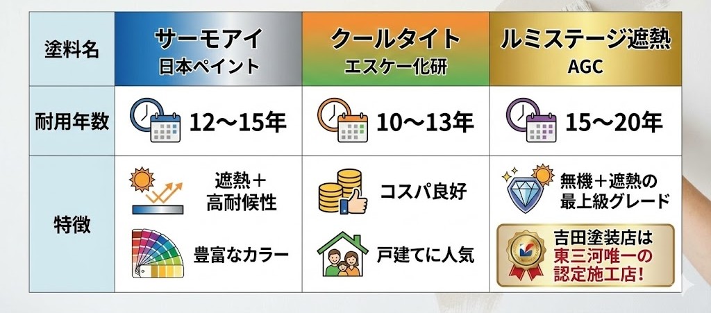 吉田塗装店では、屋根材・立地・ご予算に合わせて最適な遮熱塗料をご提案しています。