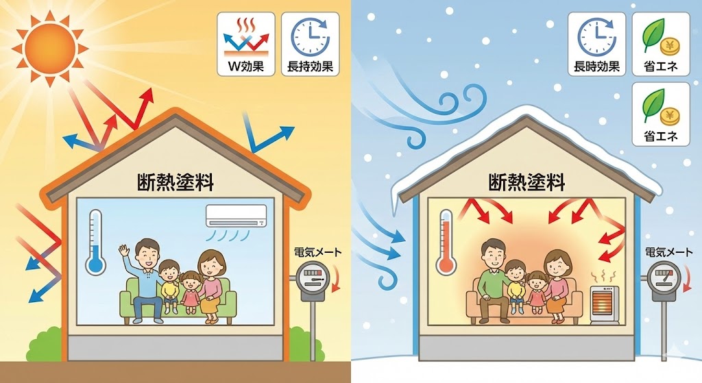 → 遮熱塗料は若干室温が下がることもあります。断熱塗料なら冬も快適です。