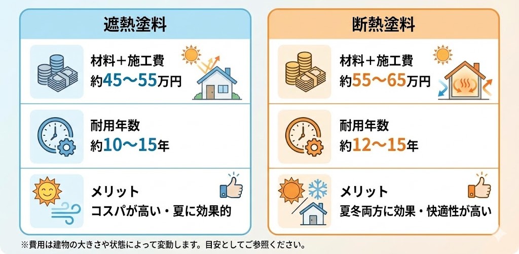👉 「1年を通して快適さを求めるなら断熱塗料」が目安です。