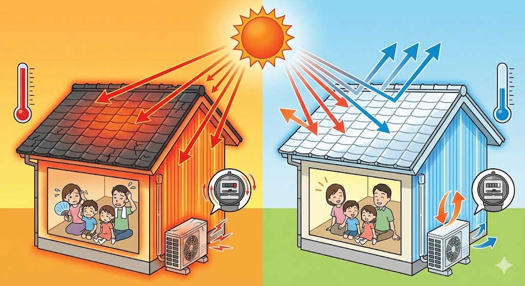 👉「屋根表面を熱くしない=暑くなりにくい」という仕組みです。