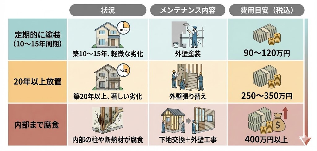 🔶 3. 外壁を放置した場合の修繕費比較