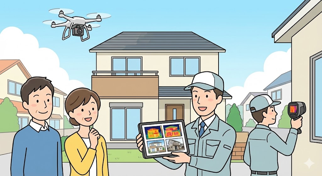 吉田塗装店では、ドローンや赤外線カメラを活用した無料診断を実施中。
