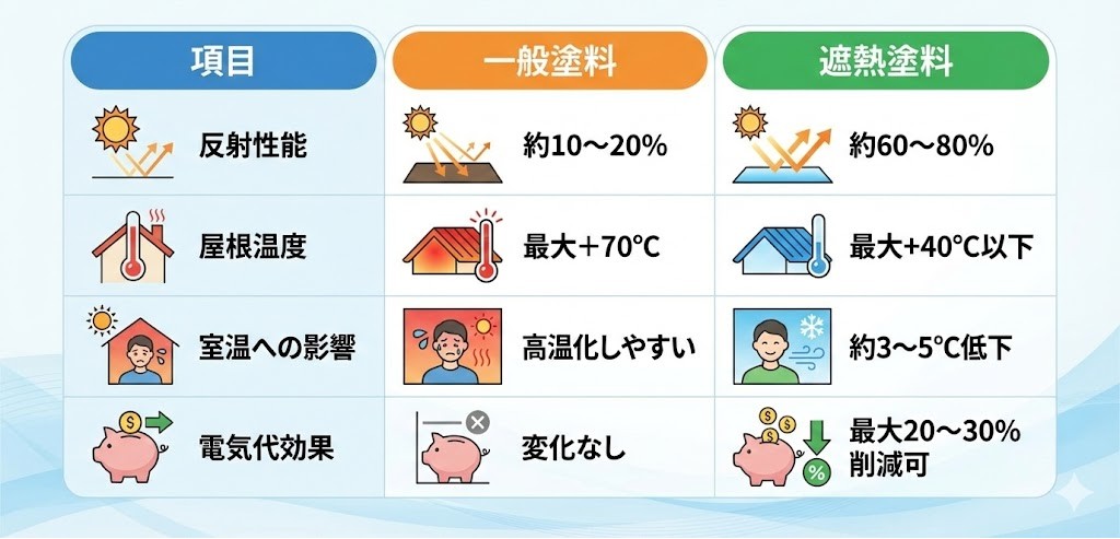 遮熱塗料とは、太陽光に含まれる赤外線を反射し、屋根表面の温度上昇を抑える特殊な塗料です。