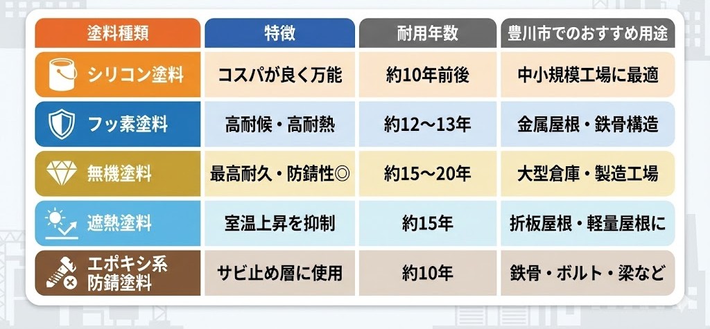 📌 豊川市では特に「潮風・台風・粉塵」などの影響があるため、5〜10年ごとの定期塗装が推奨されています。