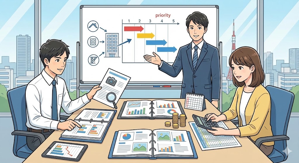 1.劣化診断レポート(写真付き) 2.各部位の修繕周期表(屋根・外壁・防水・鉄骨など) 3.費用シミュレーション 4.優先順位(緊急/短期/中期) 5.予算スケジュール |