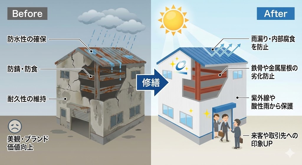 最大の目的は、建物を長持ちさせ、修繕コストを抑えることにあります。
