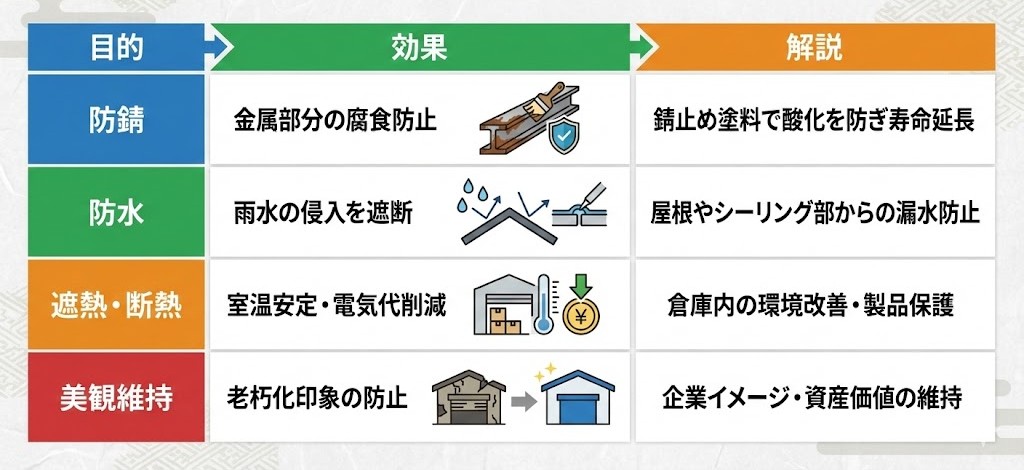 💡 倉庫塗装は「見た目」よりも保護機能の維持が最重要です。