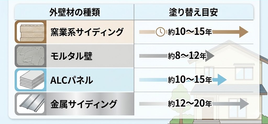 外壁材ごとの一般的な耐用年数は以下の通りです。