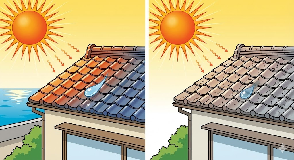屋根塗装は見た目の改善だけでなく、塩害・台風対策としても有効な工事。