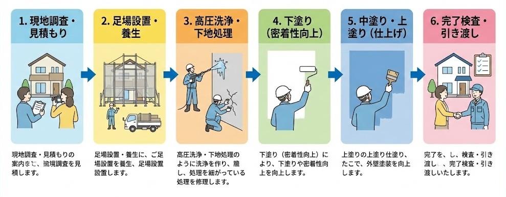 塗装工事の流れ(一般的な戸建て)