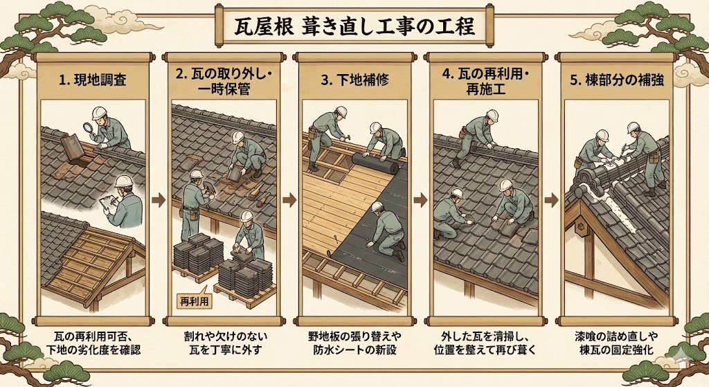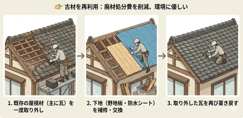 特に蒲郡市のように瓦屋根が多い地域では、この「葺き直し」という選択肢がまだまだ現役。