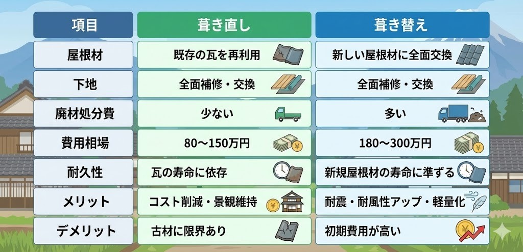 👉 葺き直しは「コストを抑えつつ景観を守りたい方」に最適。