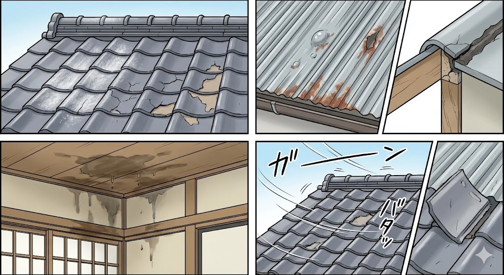 特に豊川市のように、台風・強風・夏の高温多湿の影響を受けやすい地域では、築年数や屋根材の種類に応じた早めの判断が重要です。