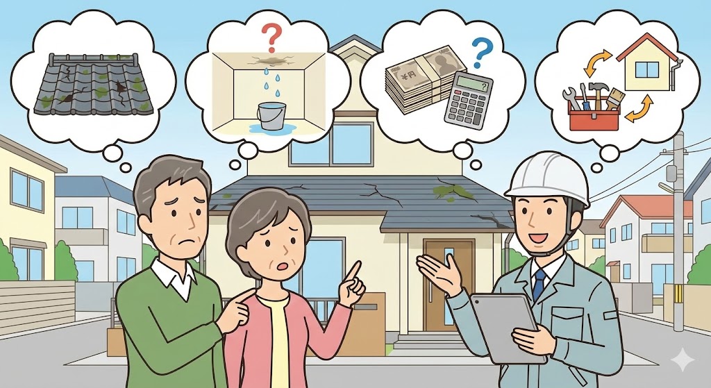 相談時によくある内容: ●屋根の状態が気になる ●防水工事が必要か分からない ●費用の目安を知りたい ●他の修理と一緒にできるか知りたい |