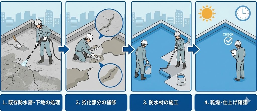 屋根防水工事は、正しい流れで進めることで失敗を防げる工事です。