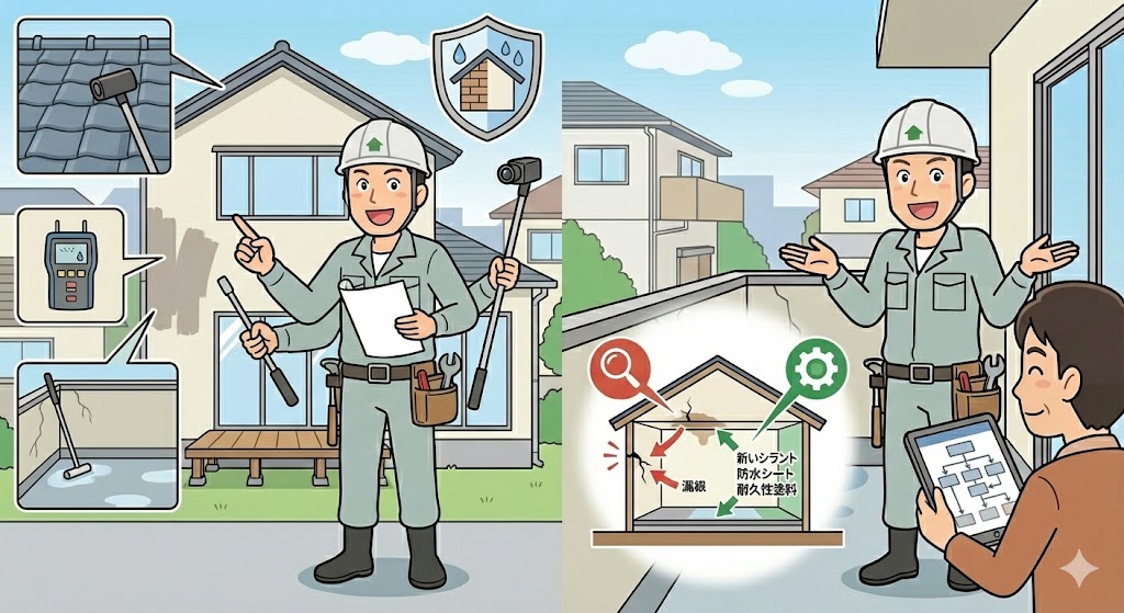 「ここが悪そうです」ではなく、なぜ雨漏りしているのかを論理的に説明できるかが重要です。