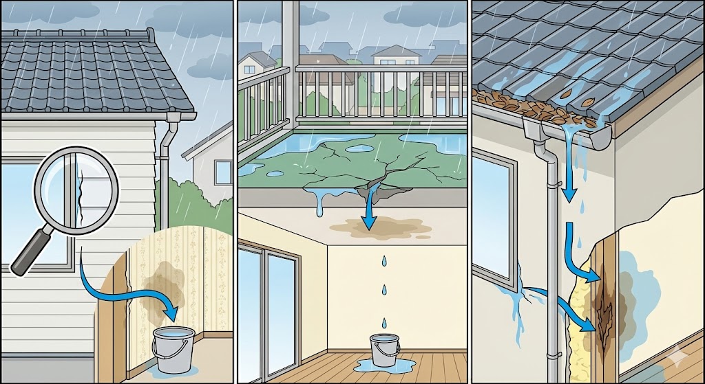 屋根・外壁・ベランダ・サッシ・雨樋など、原因は複合的であることが多く、経験の浅い業者では見誤ることがあります。