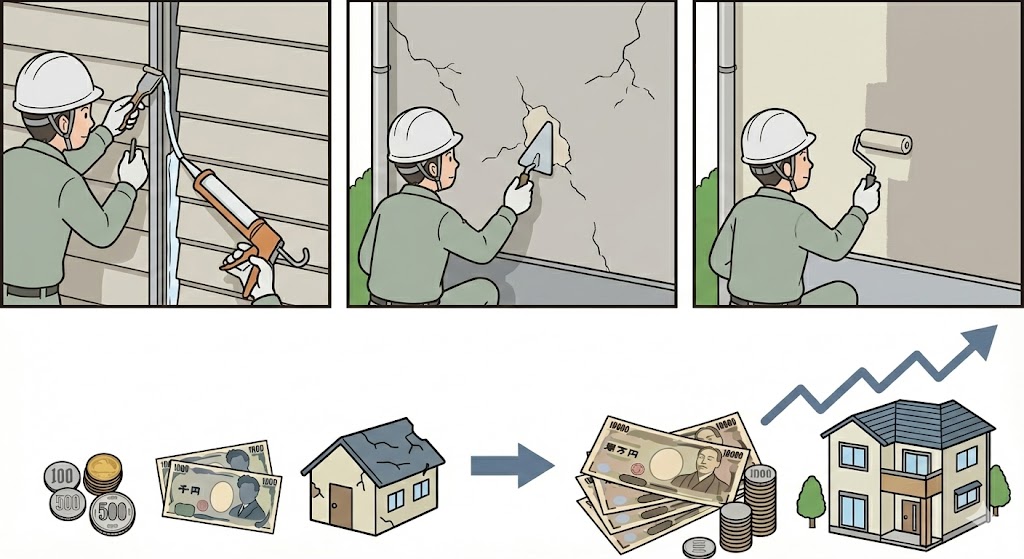 修理内容●シーリング打ち替え ●外壁補修+部分塗装 費用目安約5万円〜30万円前後 |