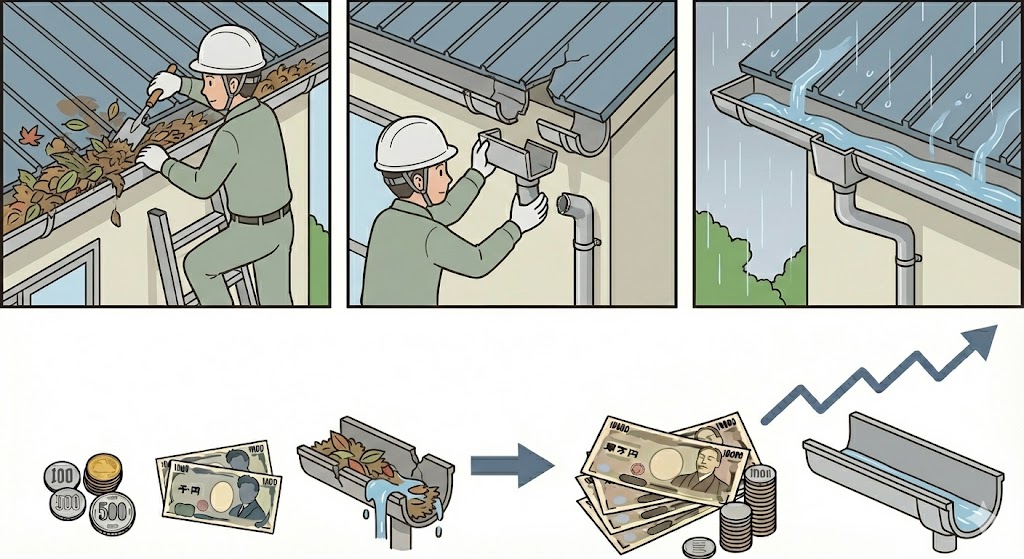 被害が拡大したり、修理費が高くなる原因になります。