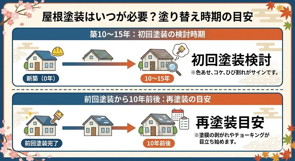 2. 屋根塗装はいつが必要?塗り替え時期の目安