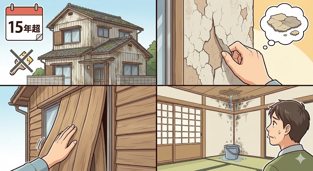 ●築15年以上で外壁工事をしていない ●塗装してもすぐ劣化する ●外壁の反り・浮きが目立つ ●雨漏りやカビが気になる |