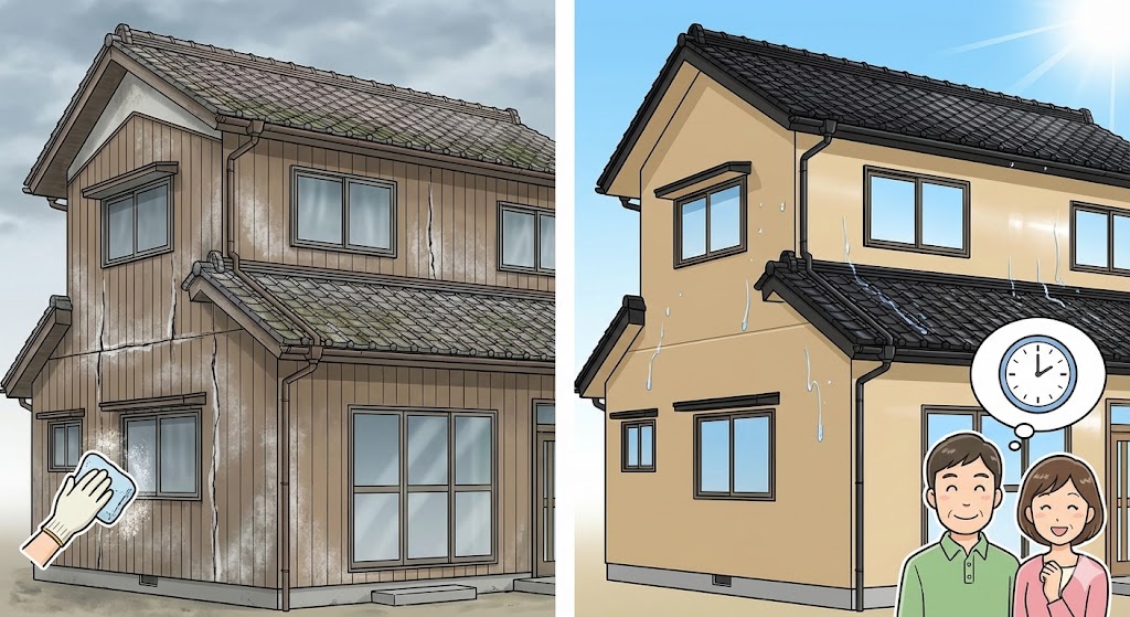 特に重要なのは、 ●外壁シーリングの全面打ち替え ●屋根塗膜・防水機能の確認 ●チョーキングやひび割れの早期対応 |