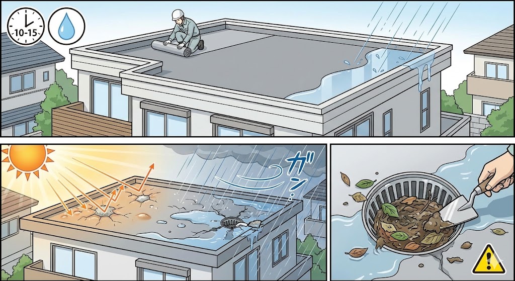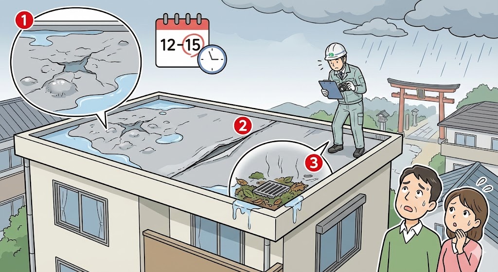 ✅ 結論|築15年前後で「屋根防水点検」は必須。陸屋根は特に要注意