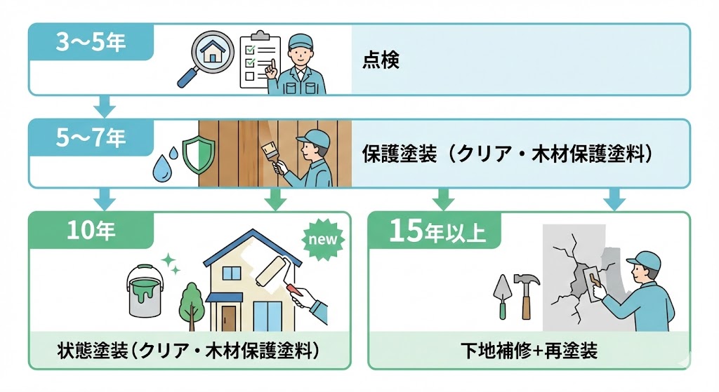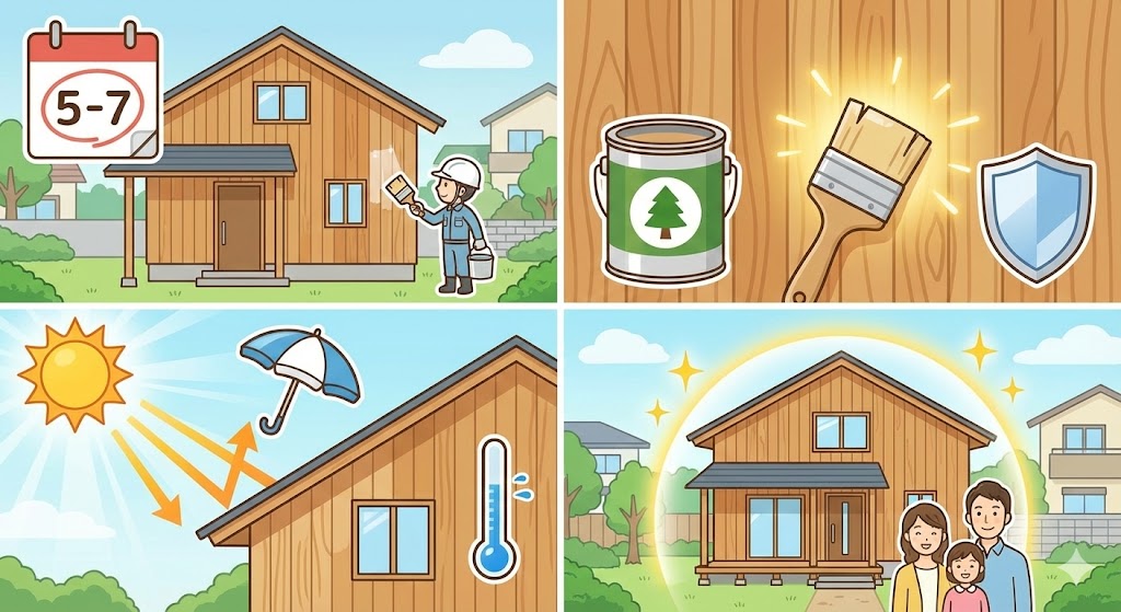 ✅ 結論|木質外壁は「5〜10年周期の保護塗装」が長持ちの鍵