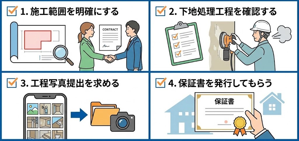 ✅ 結論|塗装前に「保証内容・施工範囲・使用材料」の確認が必須