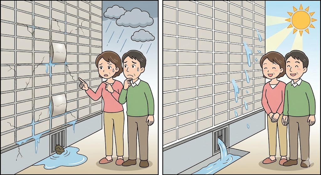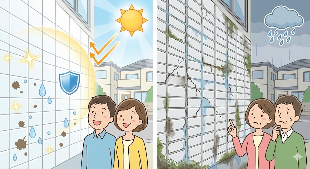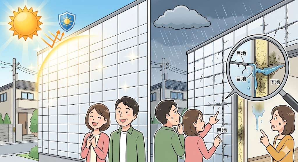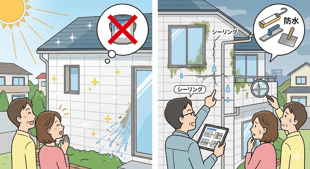 ✔ タイル表面自体は耐候性・耐汚染性が高く塗装不要 つまり、塗装ではなく“関連部位のメンテナンス”が必要です。 |
