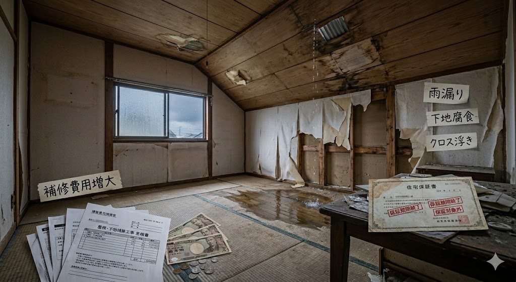 ●雨漏り ●下地腐食 ●クロス浮き ●補修費用増大 ●保証対象外リスク 早期対応が費用を抑える一番の対策です。 |