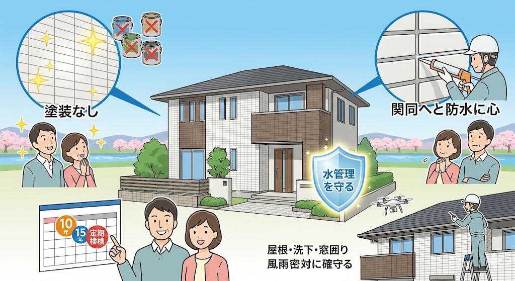 一条工務店の外壁によく使用されるハイドロテクトタイル=「塗装不要」と言われることがありますが、放置してよいわけではありません。