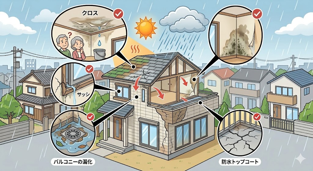 雨漏りは突然起きるように見えて、実は防水層の劣化が徐々に進行した結果です。