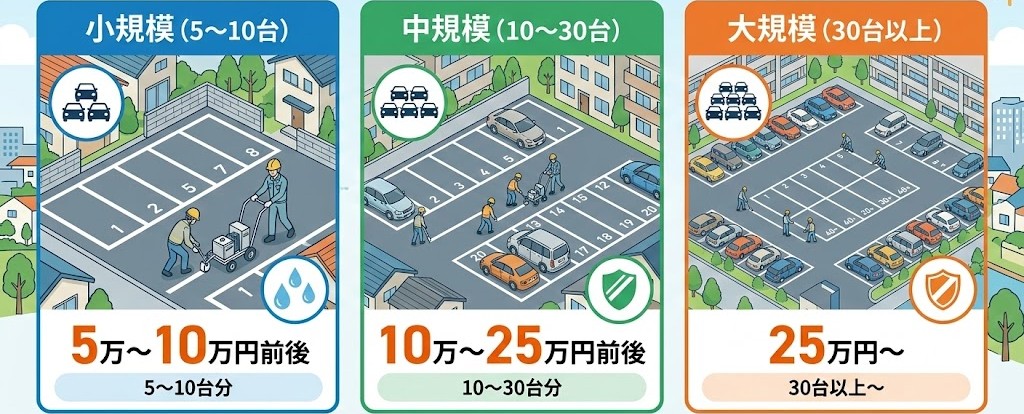 アパート・マンション駐車場の区画線工事費用は、規模や内容により異なります。