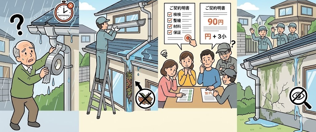 結論から言うと、雨樋の不具合は“気づいた時点”で補修するのが、最も被害と費用を抑えられるタイミングです。
