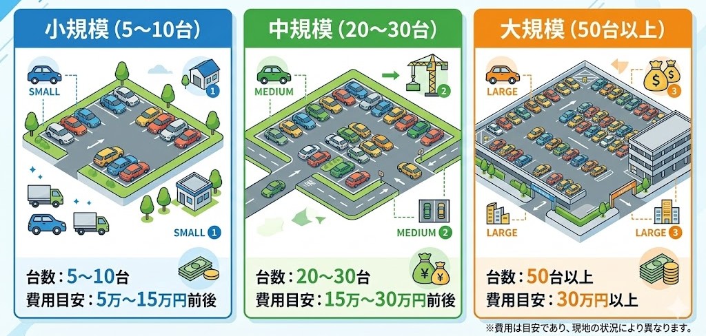 駐車場の区画線工事は、現地状況を見なければ正確な判断ができません。
