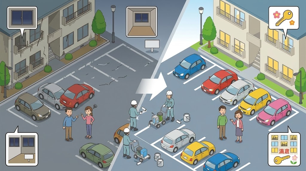 駐車場の区画線は、入居者が毎日目にする「管理状態の象徴」です。