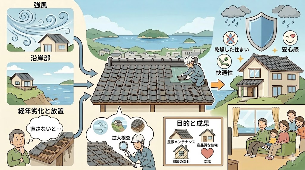 結論|蒲郡市で瓦がずれる原因は「風そのもの」ではない。本当の原因は“下地と固定力の弱り”です