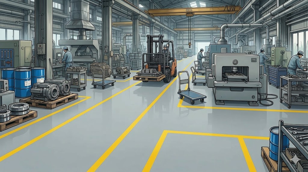 「工場内塗床はコストではなく安全への投資。豊川市の工場では、用途に合った仕様選定が事故防止と長寿命化の分かれ目です。」