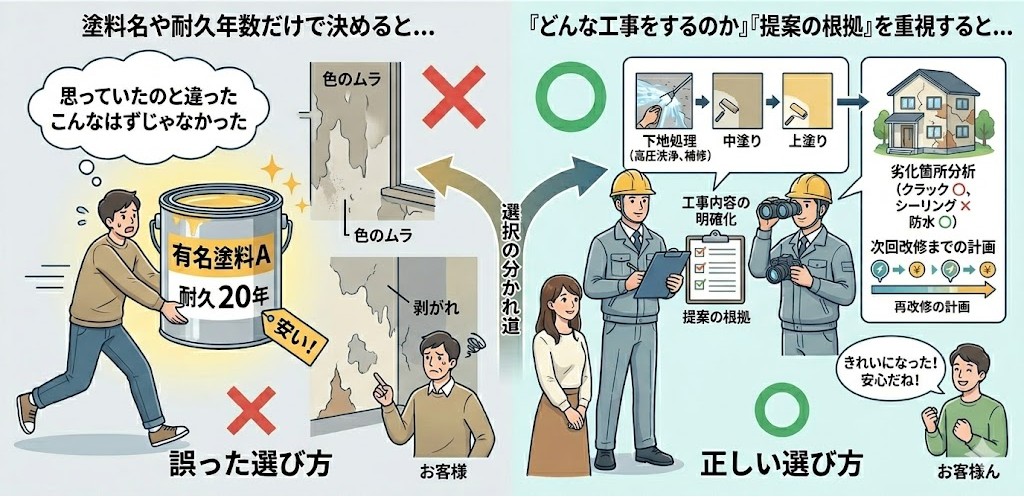 塗料の名前だけで決めるのではなく、自分の家に本当に合った工事かどうか。